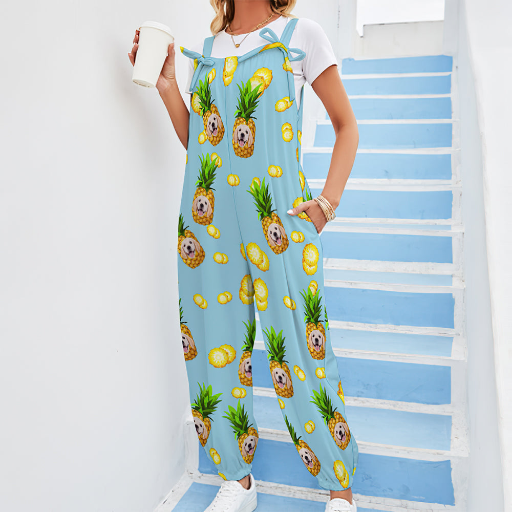 Custom Face Jumpsuit With Suspender Hawaiian Style Big Pineapple Rompers