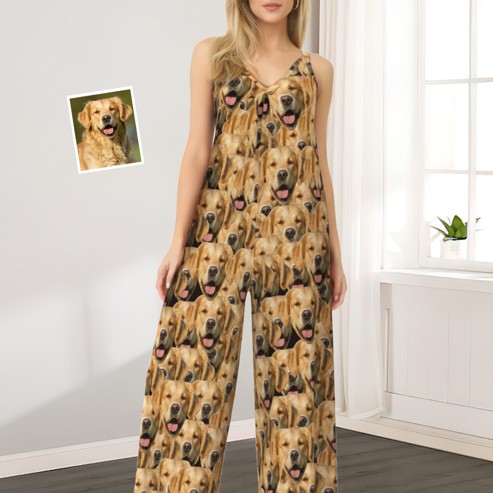 Custom Face Loose Jumpsuit With Wide Leg Face Mash Rompers