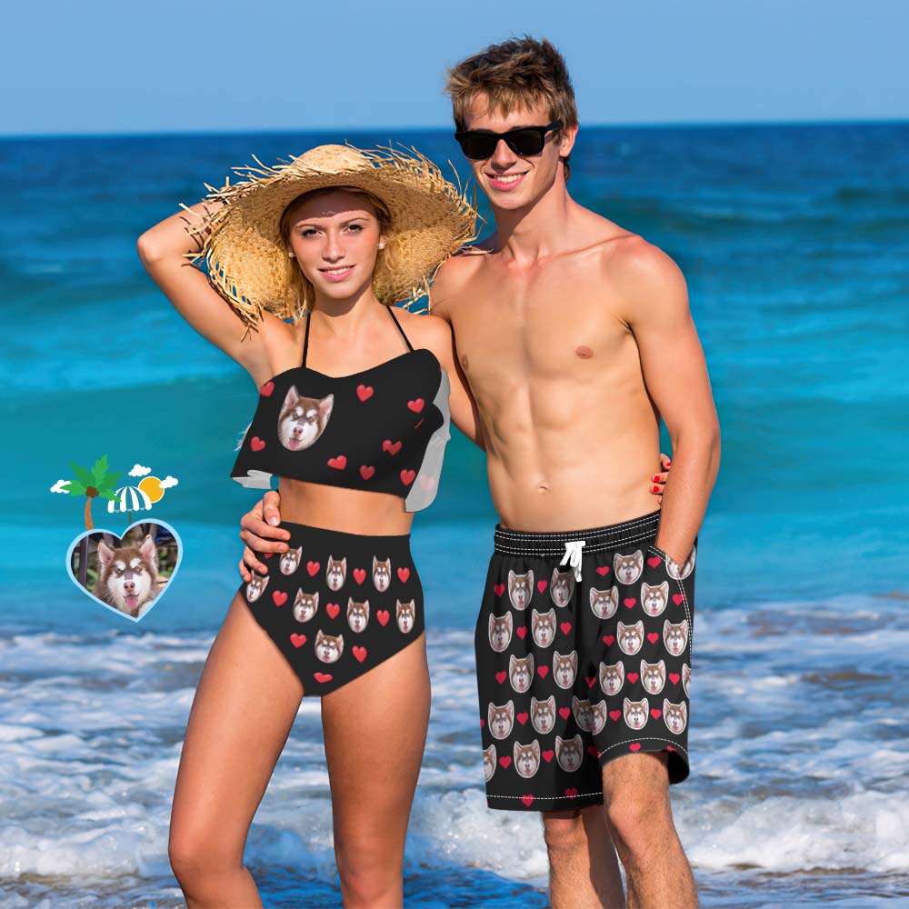 Custom Face Heart Matching Couples Swimsuits Face Couples Swimwear Gift for Lovers