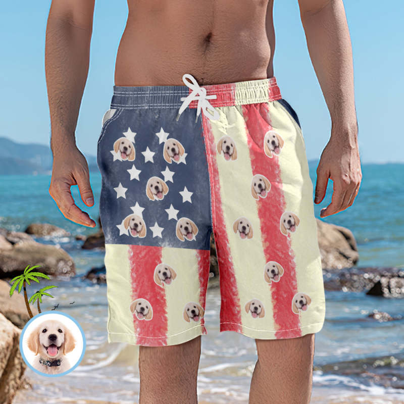American Flag Swim Trunks with Face Custom Face Swim Trunks - Artistic American Flag