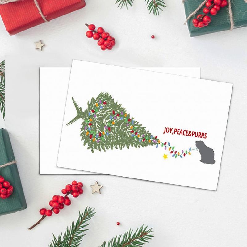 Cat Christmas Card Christmas Card Holiday Card-Horizontal Card