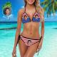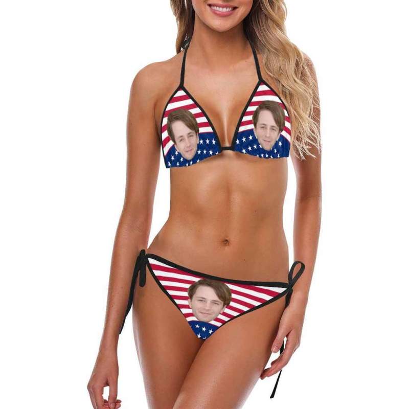 Custom Bikini with Face Swimsuit with Dog Face - American Flag Stripe