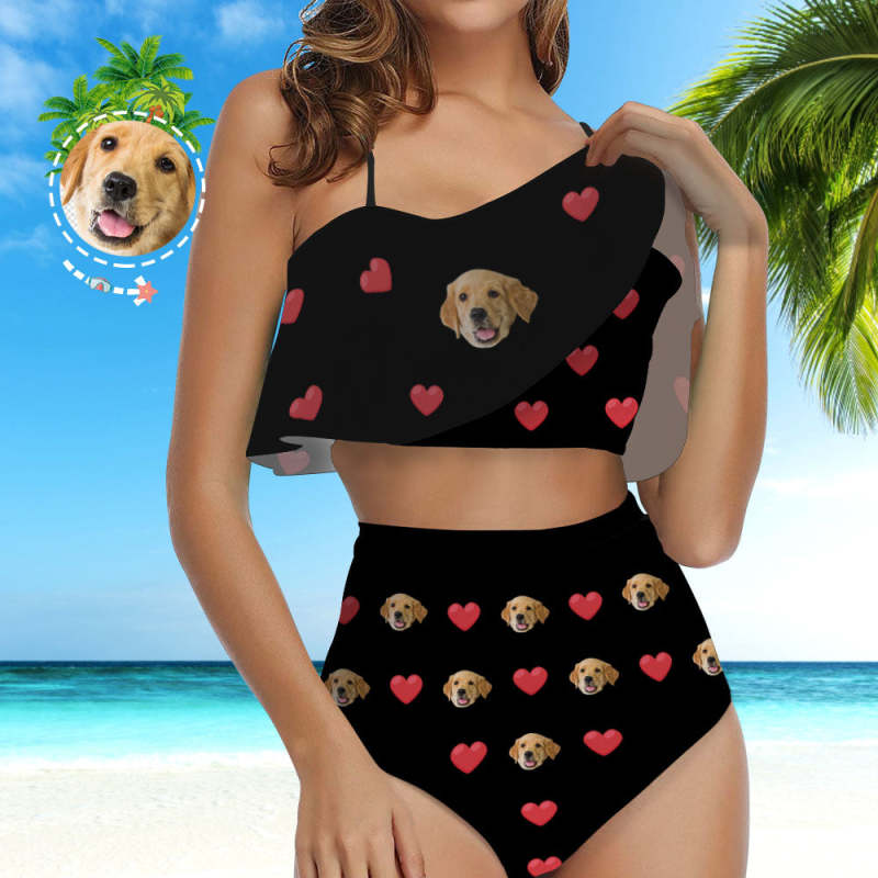 Custom Bikini with Face Swimsuit with Dog Face Ruffle Bikini with Face High Waisted - Heart