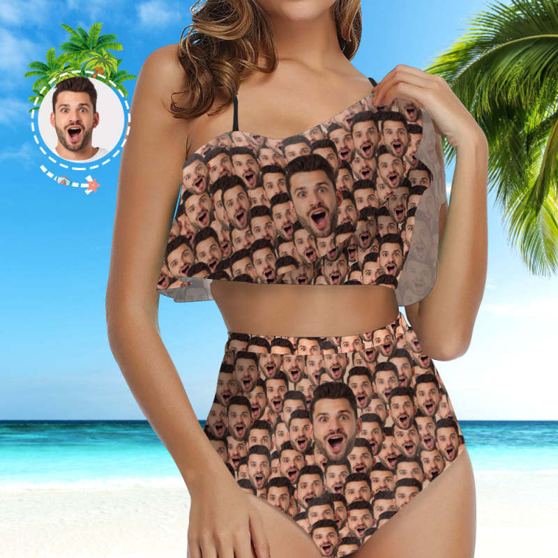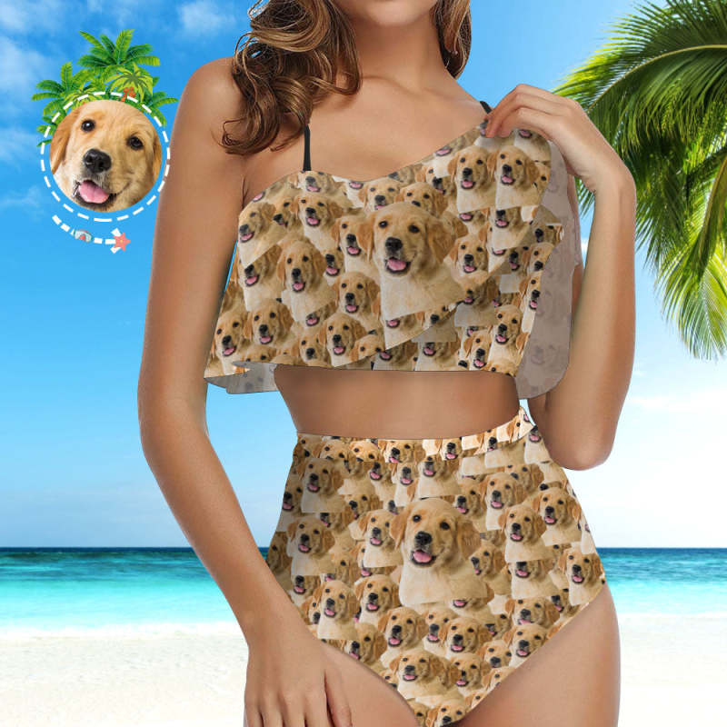 Custom Bikini with Face Swimsuit with Dog Face Ruffle Bikini with Face High Waisted - Mash