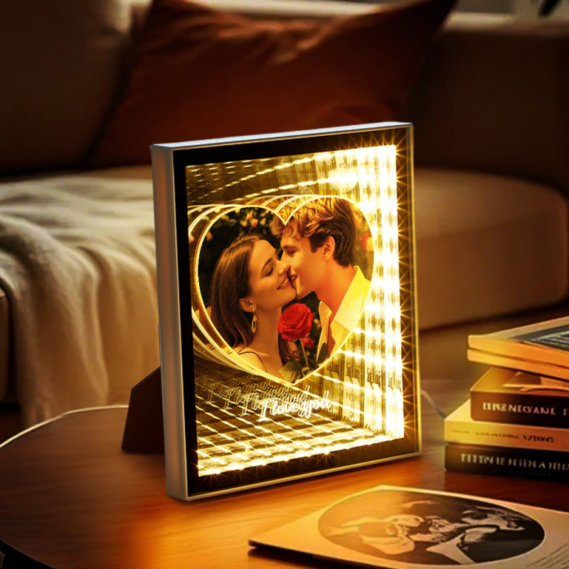 The Customized Couple Photo Love Corridor Mirror Lamp is a stunning and romantic piece of home decor that brings your cherished memories to life through light and reflection. Featuring your own personalized photo, this mirror lamp creates a warm, intimate atmosphere while brightening up any room. Whether as a thoughtful gift or a special addition to your own space, it’s the perfect way to celebrate love and create a lasting impression.