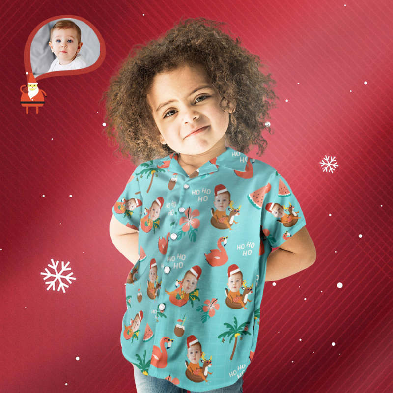 Put Your Face On Custom Christmas Hawaiian Shirt Parent-child Wears.