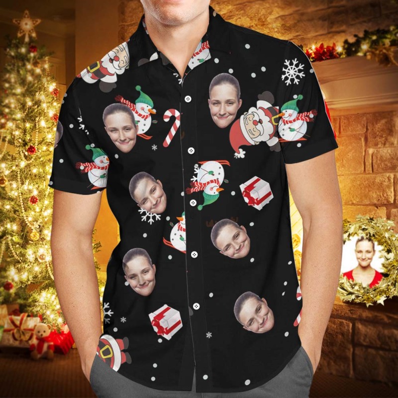 Put Your Face On Custom Christmas Hawaiian Shirt Parent-child Wears.