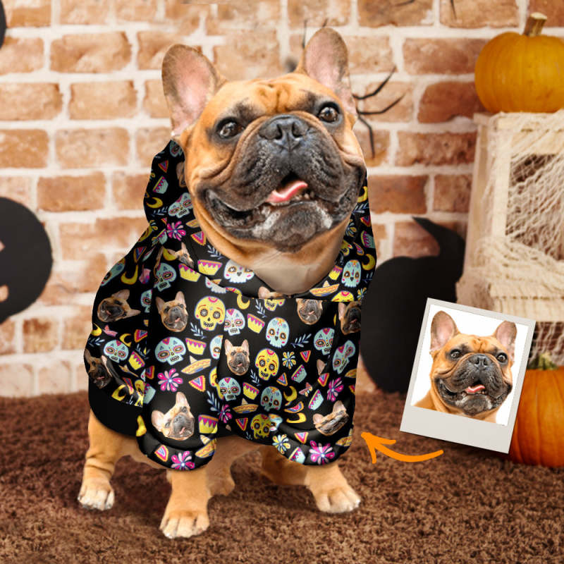 Custom Face Halloween Dog Hoodie Personalized Colorful Skull Pet Dog Apparel Cloth