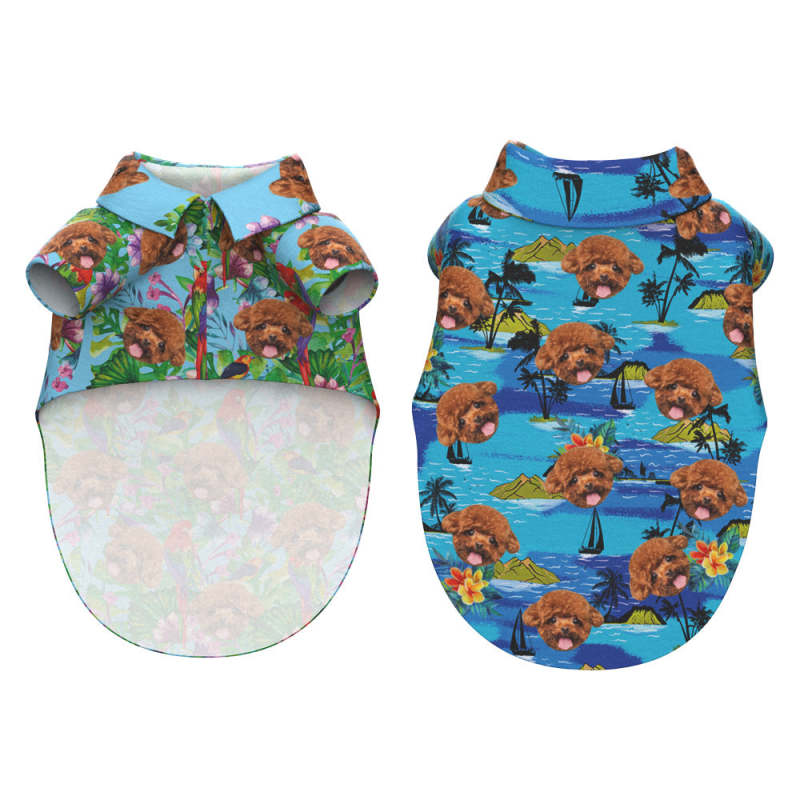 Custom Face Hawaiian Dog Shirt Personalized Coconut Tree Print Pet Beach Shirt Clothes Gift for Pets