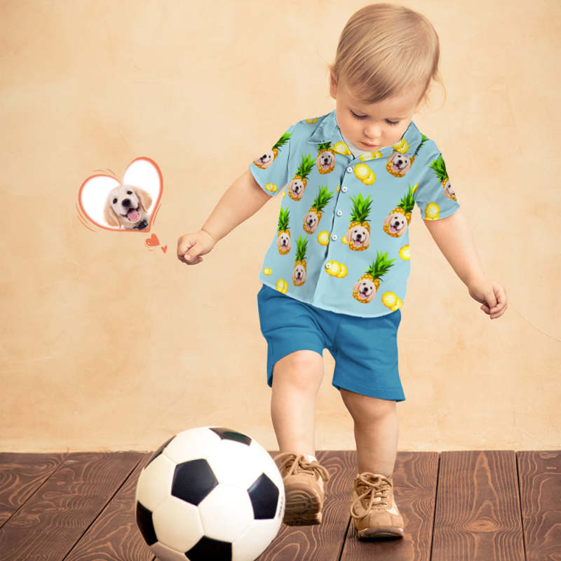 Custom Face Hawaiian Shirt Kid's All Over Print Big Pineapple Short Sleeve Shirt