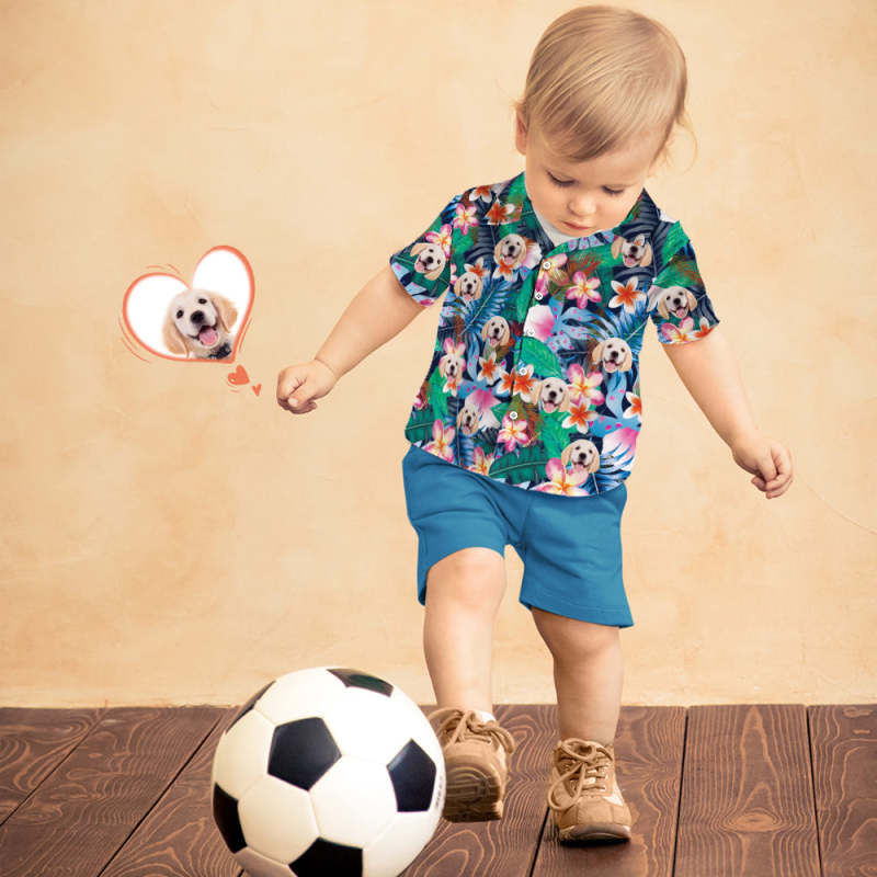 Custom Face Hawaiian Shirt Kid's All Over Print Colorful Flowers Short Sleeve Shirt