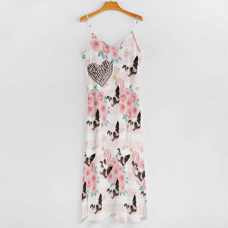 Custom Face Heart Hawaiian Style Long Dress Rose Flamingo Sling Dress