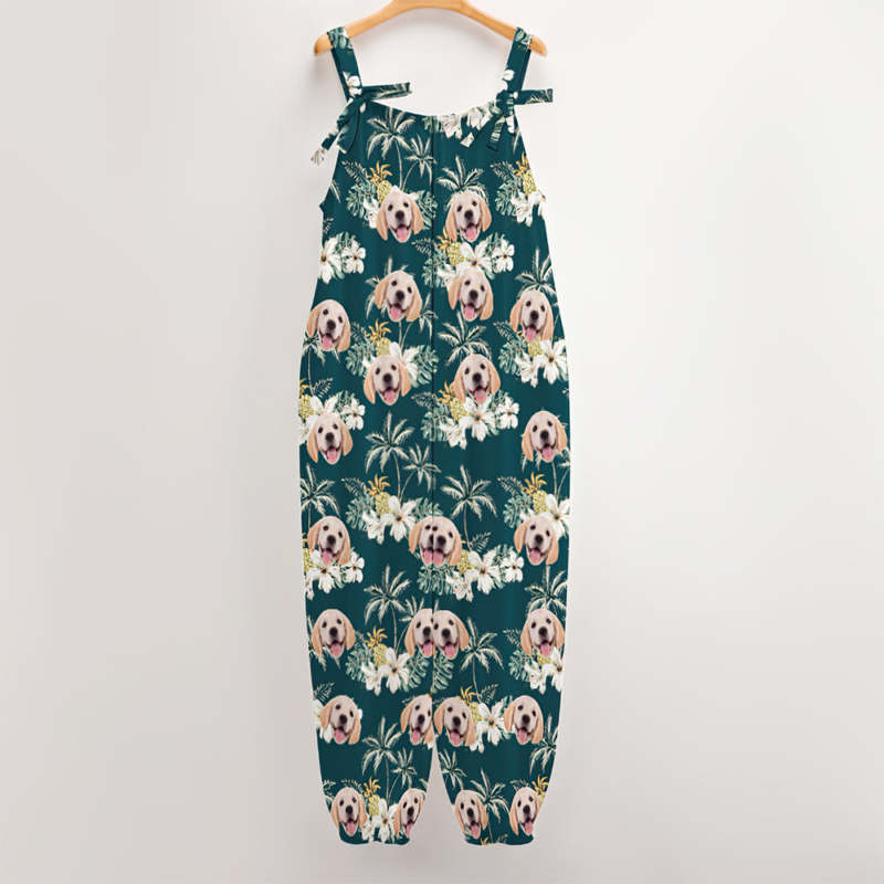 Custom Face Jumpsuit With Suspender Hawaiian Style Funky Vintage Rompers