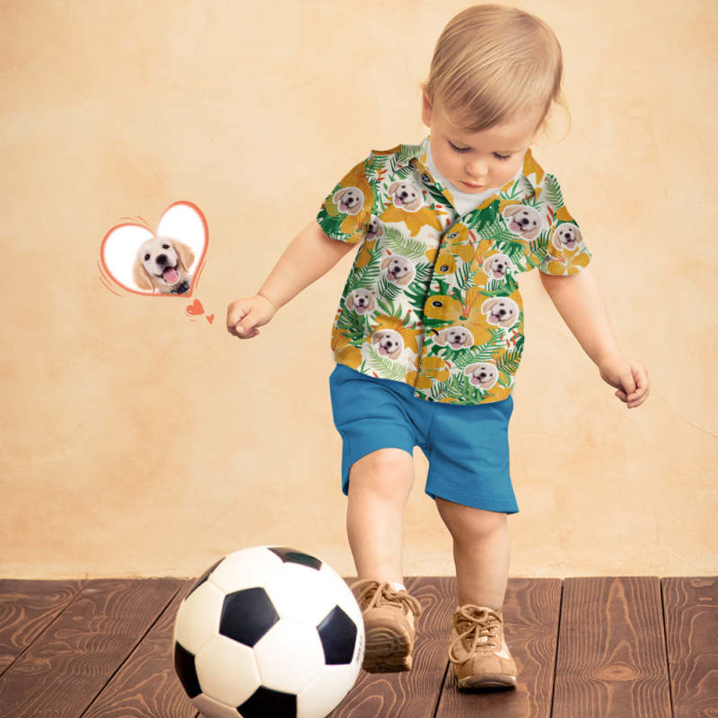 Custom Face Shirt Women's and Kids Hawaiian Shirts Short Sleeve Shirt Mother's Day Gift Yellow Flowers