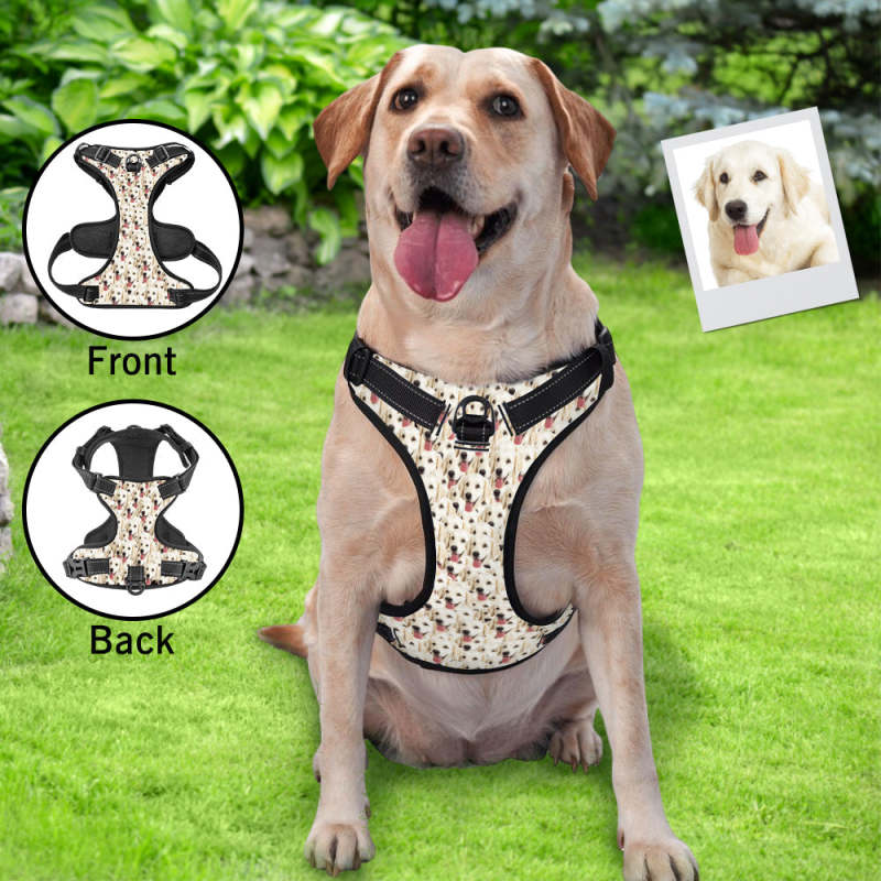 Custom Funny Dog Harness Personalized Pet Face Adjustable Reflective Vest No Pull Dog Harness