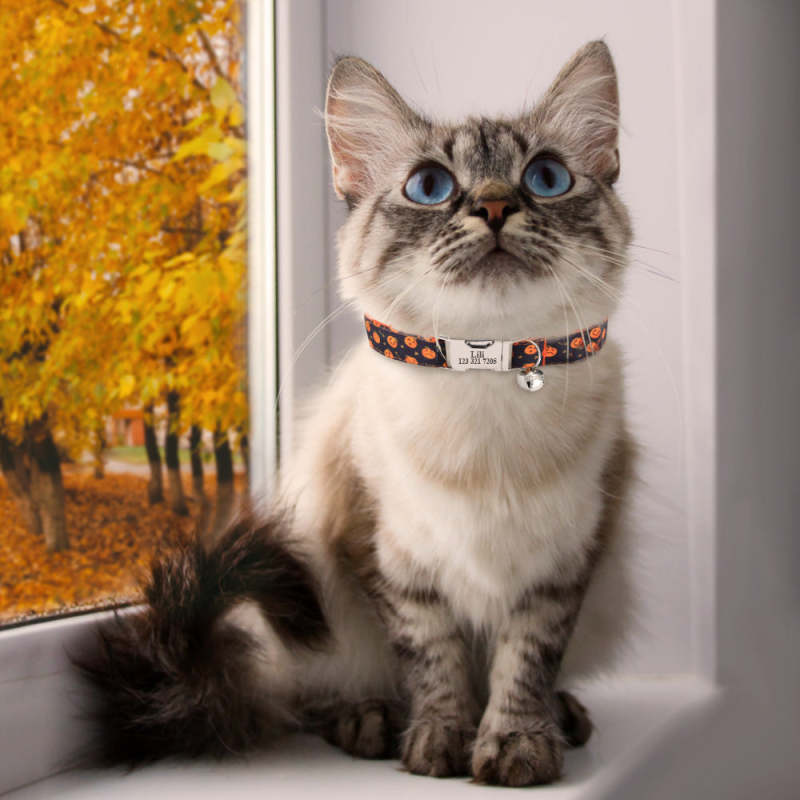 These festive collars come in a variety of vibrant lively patterns. The collar has a breakaway buckle and is made of soft cotton fabric with a large steel D-ring for long-lasting use. You may also add an engraving on the collar that includes your pet's name and a phone number. The collars are durable and comfy and come in a variety of sizes, making them ideal for pets of all sizes. We have a size chart on our listing photos.