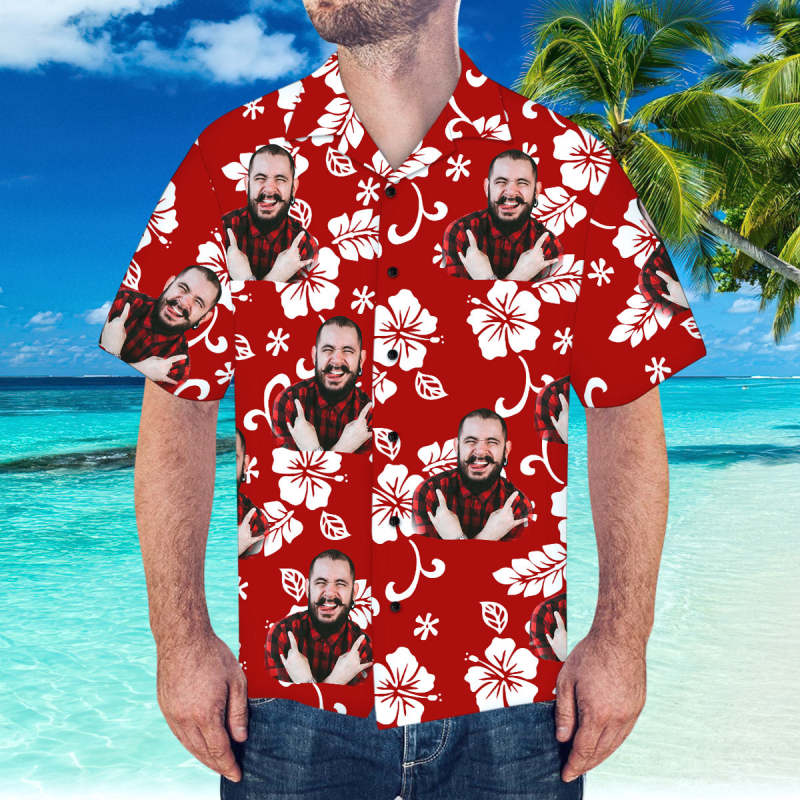 Custom Hawaiian Shirt with Husband Face Personalized Short-Sleeve Hawaiian Shirt