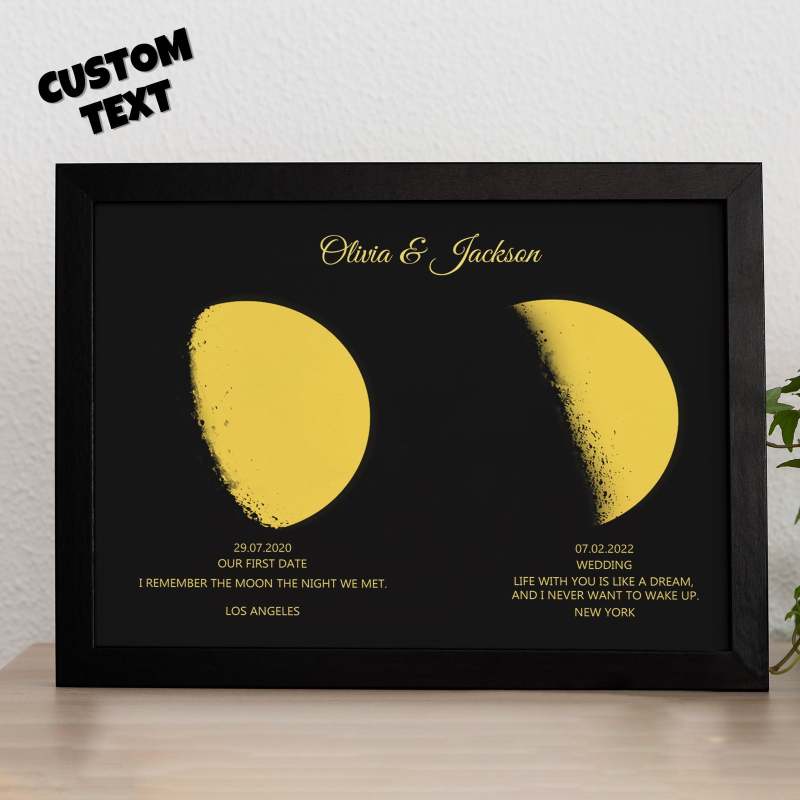 Learn the lunar phases and personalized names with our Custom Moon Phase and Names Wooden Frame. Enter a birth date to experience the moon's cycle and find out what it's like to live on the moon. With eight distinct phases and customizable text, this frame is an educational and unique addition to any space enthusiast's collection.