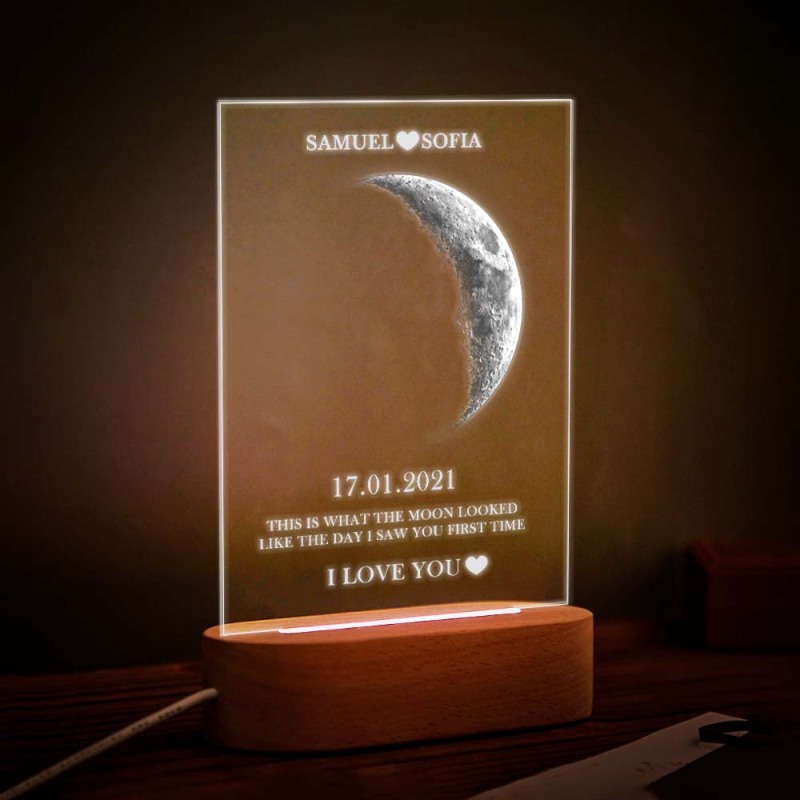 Custom Moon Phase Lamp with Personalized Names Text Seven Color Light