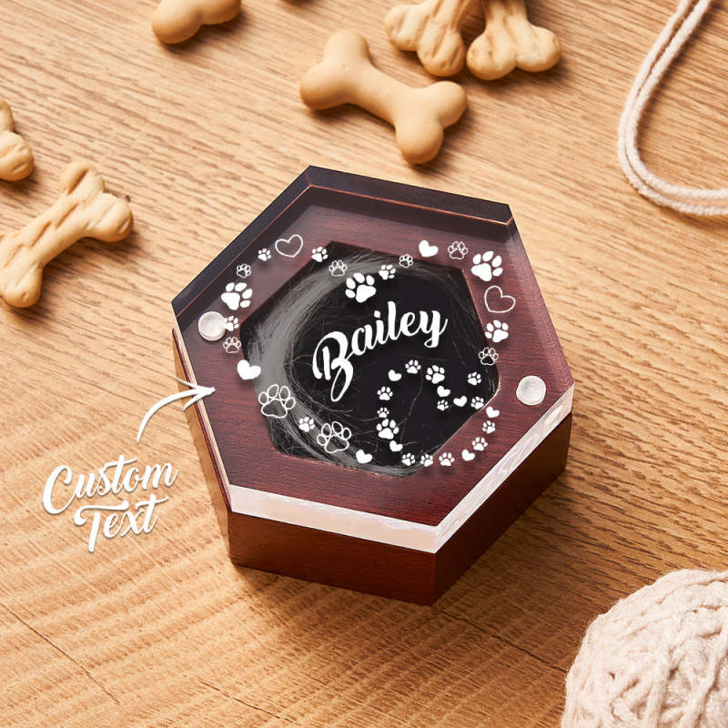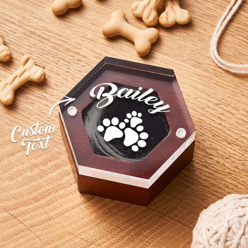 - Losing a pet is never easy, but our Custom Name Wooden Pet Hair Keepsake provides a comforting way to cherish their memory and keep them close to your heart. It's a thoughtful and heartfelt gift for anyone mourning the loss of a beloved pet, offering solace and support during a difficult time. Honor the love and companionship of your furry friend with this beautiful and personalized pet memorial gift.