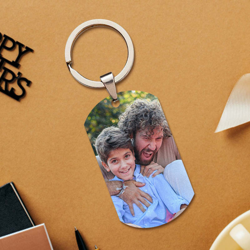 Gift For Dad Custom Gifts Photo Stainless Steel Keychain With Engraving Back