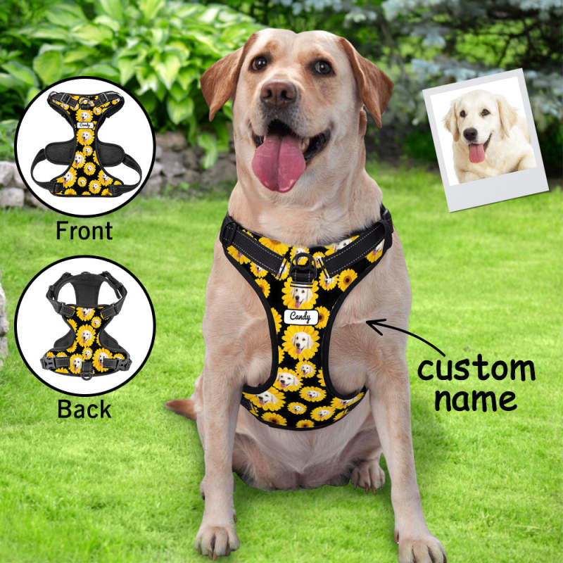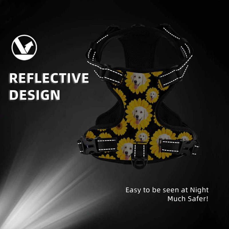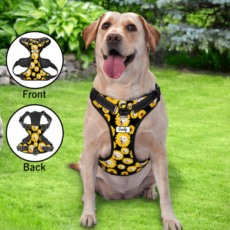 Custom Sunflower Dog Harness Adjustable Reflective Vest No Pull Dog Harness Gifts for Pet Lovers