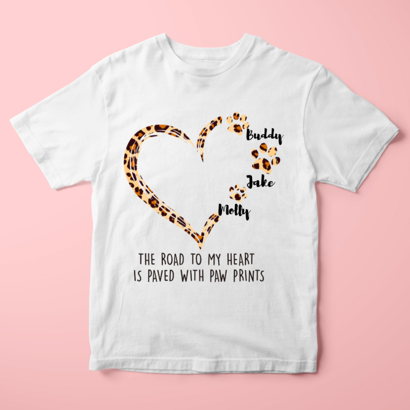 Custom Cotton T-shirt Dog Names and Pattern Paw Prints