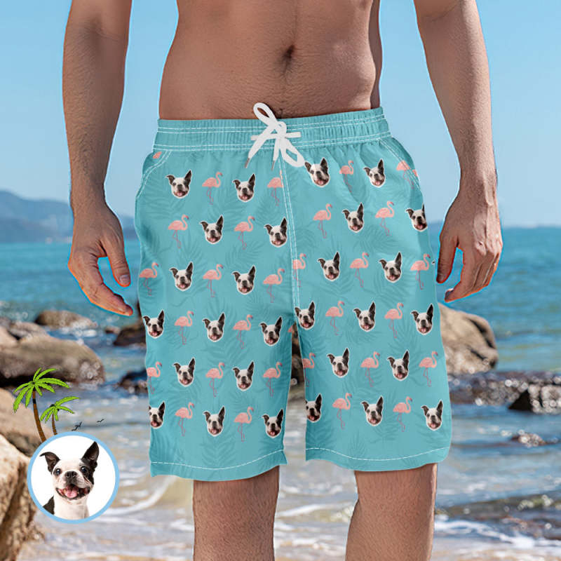 Dog Face Swim Trunks Custom Face Swim Trunks Mens Swim Trunks with Pictures - Flamingo