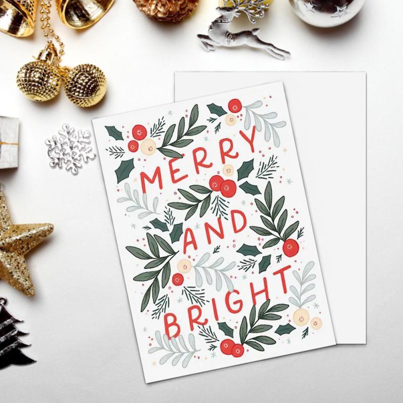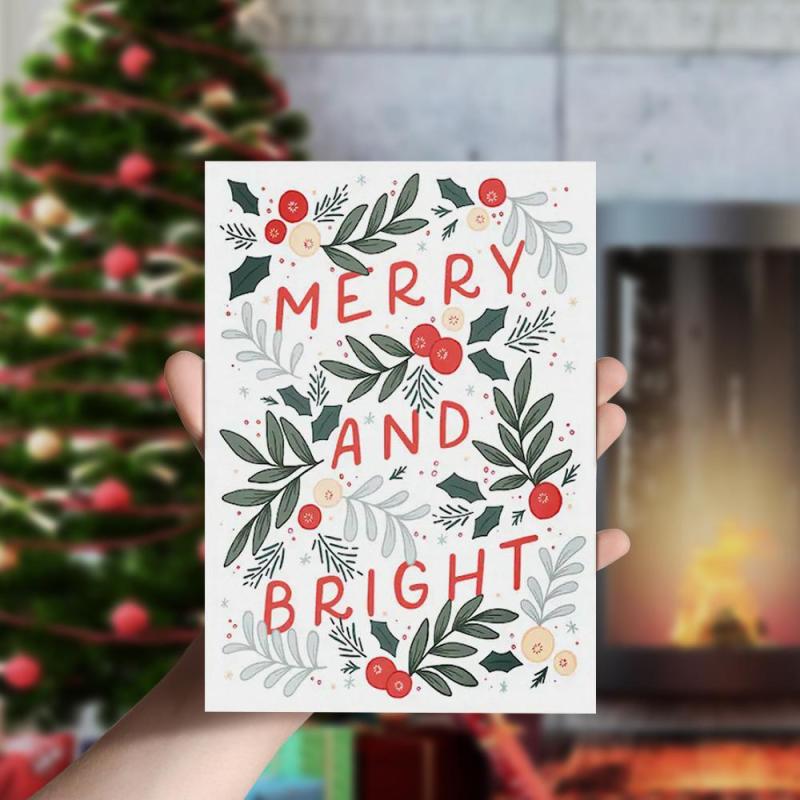 Merry and Bright Christmas Card Holiday Card-Vertical Card