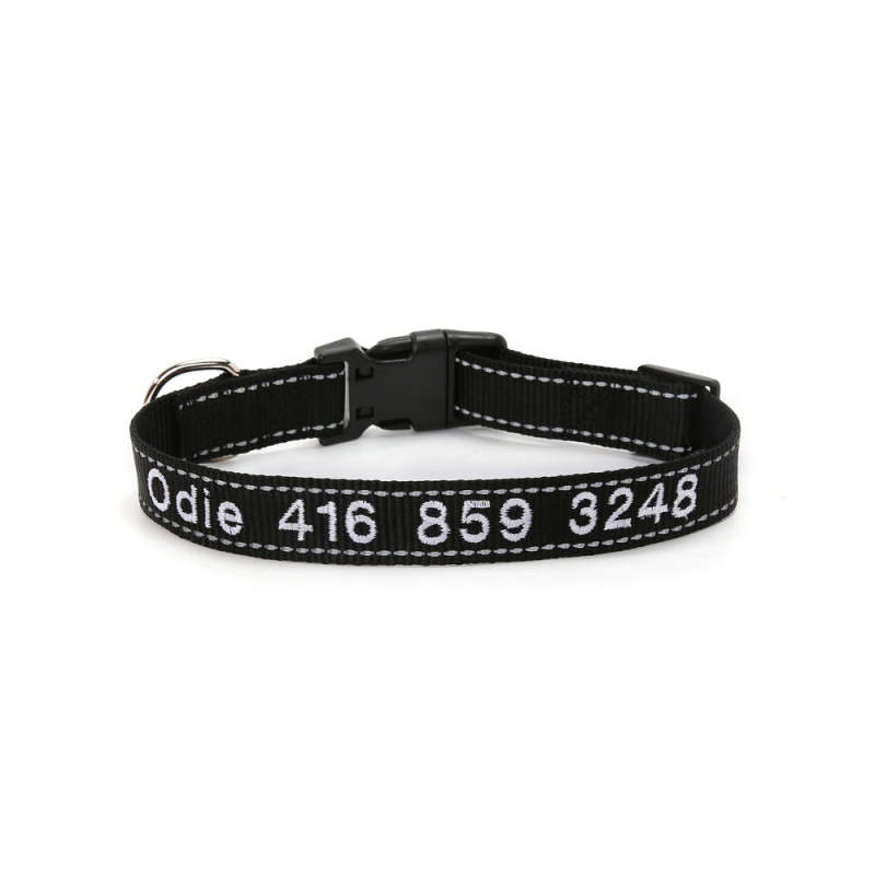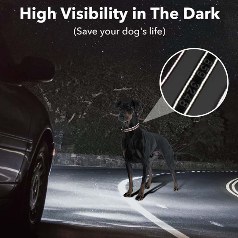 Keep your dog high visibility at night for safety. Vehicles will see your dog well in advance at night walking. This dog collar is made of high density nylon, comfortable, pliable, lightweight and fashion. Also, you can custom your dog's name and your cellphone number on it.