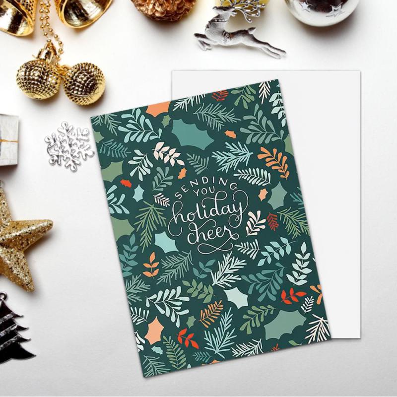 Sending Cheer Holiday Card Illustrated Botanical Christmas Card-Vertical Card